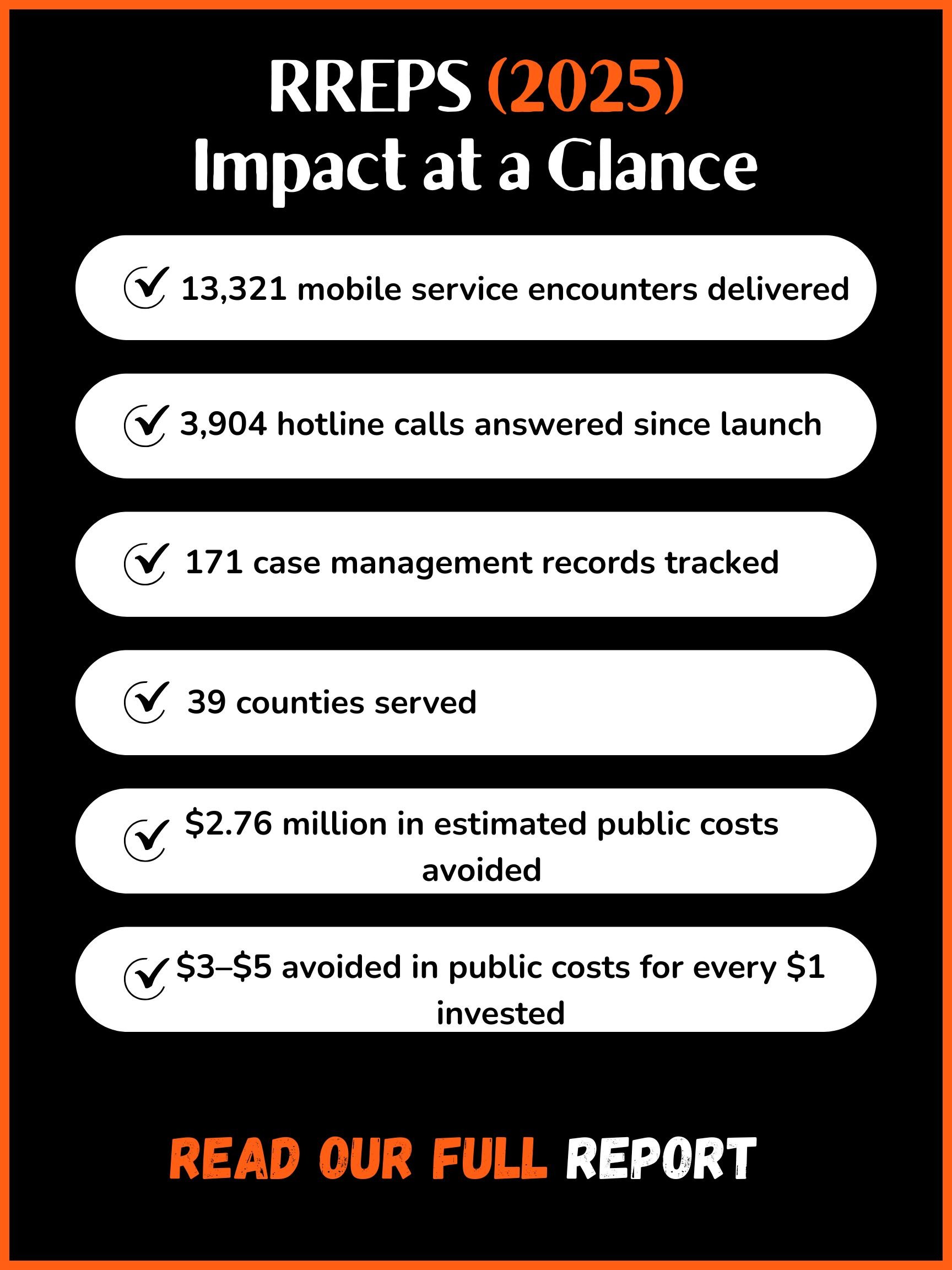 RREPS operates as an essential statewide reentry infrastructure, bridging gaps between justice systems, healthcare, housing, employment, and community-based supports. Our work is grounded in the understanding that reentry is a process, and that consistent, early intervention prevents homelessness, relapse, and reincarceration